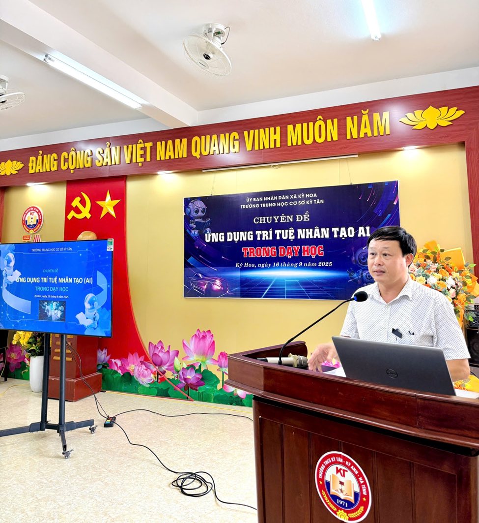 Chuyên đề “Ứng dụng trí tuệ nhân tạo (AI) trong dạy học” có ý nghĩa thiết thực, góp phần nâng cao trình độ chuyên môn, năng lực công nghệ thông tin và khả năng thích ứng với yêu cầu đổi mới giáo dục trong thời đại chuyển đổi số. Qua đó, Trường THCS Kỳ Tân tiếp tục khẳng định quyết tâm xây dựng môi trường giáo dục hiện đại, chất lượng, đáp ứng mục tiêu dạy và học của nhà trường.