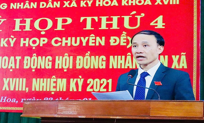 Với tinh thần dân chủ, trách nhiệm và tỷ lệ thống nhất cao, HĐND xã Kỳ Hoa đã biểu quyết miễn nhiệm đồng chí Nguyễn Đức Cữu - Nguyên Chỉ huy trưởng Ban Chỉ huy Quân sự xã; đồng thời bầu bổ sung Trung tá Đào Kim Cương - Chỉ huy trưởng Ban Chỉ huy Quân sự xã Kỳ Hoa giữ chức Ủy viên UBND xã khóa XVIII, nhiệm kỳ 2021 - 2026.