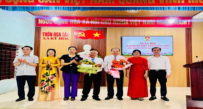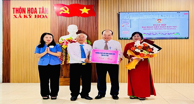 Về dự và chung vui với cán bộ, Nhân dân thôn Hoa Tân có đồng chí Nguyễn Thị Nhuần – Trưởng ban Pháp chế Hội đồng nhân dân tỉnh; đồng chí Trần Thị Huyền – Bí thư Đảng ủy, Chủ tịch HĐND xã; đồng chí Nguyễn Văn Nam – Phó Bí thư Thường trực Đảng ủy xã; đồng chí Võ Tá Cương – Phó Bí thư Đảng ủy, Chủ tịch UBND xã; đồng chí Phạm Thị Hương – Chủ tịch Ủy ban MTTQ Việt Nam xã; cùng các đồng chí lãnh đạo Đảng ủy, HĐND, UBND, Ủy ban MTTQ và các tổ chức chính trị - xã hội xã; Trưởng đoàn và các thành viên Đoàn công tác 26-QĐ/ĐU của Ban Thường vụ Đảng ủy chỉ đạo các thôn Hoa Tân; đại diện Đoàn công tác chỉ đạo các thôn; đại diện lãnh đạo Phòng Văn hóa - Xã hội; cùng các đồng chí Bí thư chi bộ, Trưởng Ban công tác Mặt trận, thôn trưởng của 14 thôn trên địa bàn xã.