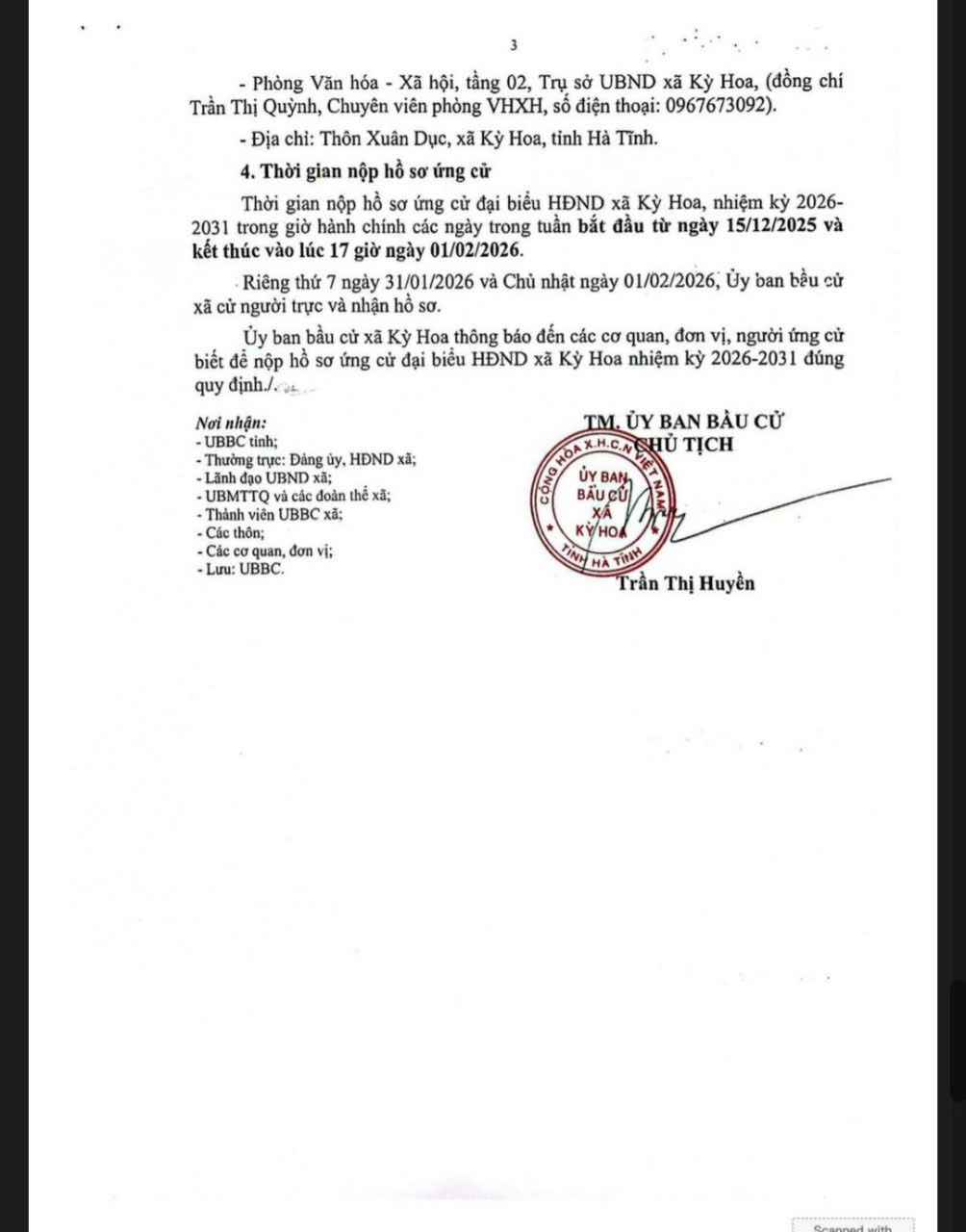 Thông báo Về địa điểm và thời gian nộp hồ sơ ứng cử đại biểu Hội đồng nhân dân xã Kỳ Hoa, nhiệm kỳ 2026–2031Thái Đàn12/12/2025A -A+Thái Đàn12/12/2025A -A+