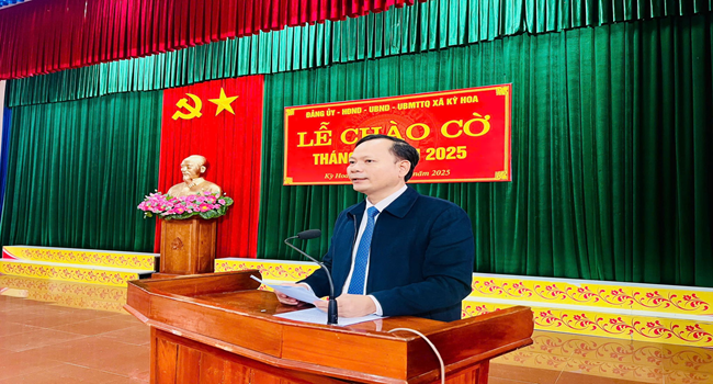 Phát biểu chỉ đạo tại Lễ Chào cờ, đồng chí Trần Thị Huyền - Bí thư Đảng uỷ, Chủ tịch HĐND xã đã ghi nhận, biểu dương sự tích cực, chủ động, trách nhiệm của đội ngũ CBCC xã trong triển khai lượng công việc lớn, áp lực cao, hoàn thành tốt khung kế hoạch nhiệm vụ tháng 10. Đồng thời đề nghị đội ngũ CBCC xã Kỳ Hoa tiếp tục nâng cao tinh thần đoàn kết, ý thức kỷ luật và tinh thần trách nhiệm, lan toả tinh thần “Thượng tôn pháp luật” trong thực thi công vụ và tuyên truyền nâng cao ý thức pháp luật của nhân dân; Tiếp tục nâng cao hiệu quả các Đoàn công tác 26 của Đảng uỷ, nâng cao chất lượng sinh hoạt chi bộ,công tác cải cách hành chính, giữ vững kỷ cương, xây dựng chính quyền cơ sở vững mạnh, phục vụ nhân dân ngày càng tốt hơn, hướng tới mục tiêu hoàn thành nhiệm vụ đã đề ra trong tháng 11 và cả năm 2025.